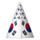 The South Korean flag is a white field with in the center an emblem and four trigrams on each corner of the flag. The used colors in the flag are blue, red, white, black. The proportion of the South Korean flag is 3:2. The Flag of South Korea was adopted in 1883. The first use of the current flag design was in 1882. The last change to the current South Korean flag design was in 1948.