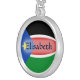 The design for this attractive pendant features a name overlying the South Sudanese flag, which has been neatly morphed to fit the round shape. The featured name can be changed to any name or text of your choice, creating a personalized gift for someone who loves South Sudan.