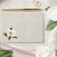Beautiful ivory linen look wedding envelope, with a chartreuse color on the inside. A vintage painting of a white magnolia flower decorates the left front of the envelope. Black script text, on the back flap, is ready to personalize with your return address. Lovely addition to our Southern Belle Magnolias Wedding set.