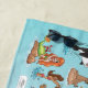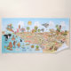 A spectacular cartoon map of Southern California – Los Angeles, Anaheim, Long Beach, San Diego and hundreds of other cities. This charming scene has it all – a surfer hangs ten as a mermaid lounges on a rock, a T-Rex roars a challenge, a killer whale leaps out of the water while a muscular beach couple both flex to impress and much much more...