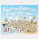 Bright and charming cartoon blanket offers a whimsical view of Southern California - cute characters enjoy the warm California sun showcasing Los Angeles, San Diego, Riverside, Palm Springs, Anaheim and Long Beach and hundreds of others, Anza Borrego and Joshua Tree parks as well as the border cities of Tijuana, Tecate and Mexicali.