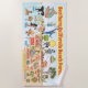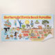 Bright and colorful scene offers a spectacular view of Southern California - wacky characters frolic on the beach and desert of SoCal showcasing Los Angeles, Orange County, San Diego, Santa Barbara, Riverside, Palm Springs, El Centro, Salton Sea, Anza Borrego and Joshua Tree parks as well as the border cities of Tijuana, Tecate and Mexicali. This charming scene has it all – a surfer hangs ten while a killer whale leaps out of the water, zoo animals greet the tourists, wine lovers make a toast as a hiker is noticed by a UFO and much more…