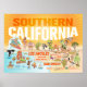 Bright and charming cartoon offers a whimsical view of Southern California - cute characters enjoy the warm California sun showcasing Los Angeles, San Diego, Riverside, Palm Springs, Anaheim and Long Beach as well as the border cities of Tijuana, Tecate and Mexicali.