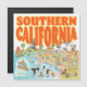Bright and colorful scene offers a spectacular view of Southern California - wacky characters frolic on the beach and desert of SoCal showcasing Los Angeles, Santa Barbara, San Diego, Riverside, Palm Springs, Anaheim, and many others plus Anza Borrego and Joshua Tree parks as well as the border cities of Tijuana, Tecate and Mexicali. This charming scene has it all – a surfer hangs ten while a mermaid lounges on a rock, a killer whale leaps out of the water, zoo animals greet the tourists, a muscular beach couple both flex to impress as a T-Rex roars a challenge and a tank rumbles into position and much more…