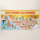 A spectacular cartoon of Southern California – Los Angeles, Anaheim, Long Beach, San Diego. This charming scene has it all – a surfer hangs ten as a mermaid lounges on a rock, a T-Rex roars a challenge, a killer whale leaps out of the water while a muscular beach couple both flex to impress...