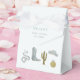 Cute and rustic cowboy theme baby shower favor box featuring illustration of cowboy boot and hat, cacti and snake.