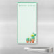 If you have an affection for the southwest or know someone who does, this is a cute notepad for back to school too. The design features adorable watercolor cactus with a yellow flowers in terra cotta pots at the bottom left of the magnetic back notepad with custom text centered at the top. The design is set over a pastel green background with a complementary border all around. Personalize the template text, remove the text or click customize to select a typeface style, size, and color you like.