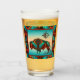 This is a Unique "One of a Kind" Southwest Buffalo and Sun Beer Glass! It Features a Southwest Buffalo and Sun on a Turquoise and Orange sunset Background...Surrounded by a Southwest Border in Turquoise, Orange & Black!