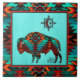 Brighten Your Home with this Unique "One of a Kind "Southwest Buffalo Tile! It Features a Southwest Buffalo and Sun on a Turquoise Background...Surrounded by a Southwest Border in Turquoise, Orange & Black!