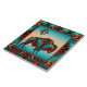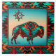 Brighten Your Home with this Unique "One of a Kind "Southwest Buffalo Tile! It Features a Southwest Buffalo and Sun on a Turquoise and Orange Sunset Background...Surrounded by a Southwest Border in Turquoise, Orange & Black!