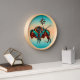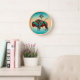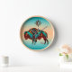 This is a Unique "One of a Kind" Southwest Buffalo Round Wood Wall Clock! It Features a Southwest Buffalo or Bison and Sun on a Turquoise and Orange Sunset Background!