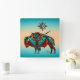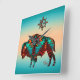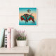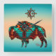 This is a Unique "One of a Kind" Southwest Buffalo Wall Clock! It Features a Southwest Buffalo or Bison and Sun in Turquoise, Orange and Black on a Turquoise and Orange Sunset Background!