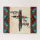 Enjoy this Unique "One of a Kind" Southwest Cross Puzzle! It Features a Large Southwest Cross in Turquoise, Orange and Black on a Tan Sandstone Background and the Inspiring Christian Words...."Faith Over Fear'!