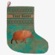 Personalize this christmas stocking featuring a cute aged copper colored Javelina Daddy silhouette on an verdigris copper patina colored background in teals and turquoise bordered by geometric patterns inspired by the colors, designs and collared peccarys living near the artist's home in the southwest.