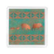 An oxidized verdigris copper patina colored background in teals and turquoise with cute aged copper colored javelina silhouettes, bordered by geometric patterns inspired by the colors, designs and collared peccarys living near the artist's home in the southwest.