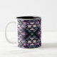This design features a modern Southwest pattern in purple, pink, teal, black and white with overlapping shapes and colors that are echoes of the other shapes.