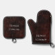 Southwest Faux Brown Leather Cowhide Oven Mitt & Pot Holder Set