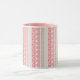 A coffee mug featuring an original southwestern-inspired geometric pattern from Mango Moon Studio. The design consists of and chevrons in warm hues of rose and tan, evoking the desert landscape at sunset.