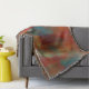 A quality printed throw has its advantages. This is a much finer weave throw than its loopier cousins, and though lighter, it is worth the investment for custom room accessorizing. The back is much prettier than the typical brown, and the fringe on the long sides very vivid, the selvage nicely done. Before photographing, I washed the throw in cold water, delicate, with a thicker woven throw the same size. On tumble dry low, this throw was dry in half the time as the other. This is a very practical quality if you use throws for furniture covers or to wrap up in frequently. The sleekness of the fabric makes it a great layer for accenting or protecting without the feeling of sitting on too much stuff. Perfect for napping or when you feel a light chill coming on. The color printing is beautiful and on this fabric, matched the design and color of my Photoshop image. This is an advantage for blending room fabrics and colors. The fringe on the short sides prints the colors from the design image and therefore varies from the side fringe. I streaked a white fractal line through the plaid pattern to give the illusion of weaving. This printed as crisp as an illusory thread, and put some white in the short side fringe, showing another advantage of print vs loomed- for artistic purposes, line lines, detail, and color integrity can be planned and preserved. My loomed throws have color limitations and more of a needlepoint texture. Print throws reproduce an exact image. The throw felt a little stiff straight out of the package, but this went away in the first delicate wash. Of course I searched the wash water for ink or bleeding and there was none.
