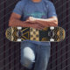 Witches Hammer skateboard design, Southwest Native American Indian skateboard design, tribal skateboard Indian design, African tribal Skateboard, extreme sports skateboard, Virginia Vivier designer skateboard, brown, tan, black skateboard.