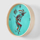 Brighten Your Home with this Unique "One of a Kind" Kokopelli Round Wood Wall Clock! It Features a Southwest Kokopelli Playing the Flute and Dancing Under the Sun in Turquoise, Orange and Black....on a Turquoise and Orange Sunset Background!