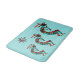 Decorate Your Bathroom with this Unique "One of a Kind" Southwest Kokopelli Bath Mat! It Features Three Southwest Kokopelli in Turquoise, Orange and Black, Playing the Flute and Dancing Under the Sun on Turquoise Background! This Kokopelli Bath Mat has a Matching Shower Curtain and Towel Set!