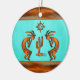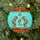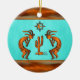Personalize this "One of a Kind" Southwest Kokopelli Christmas Ornament! It Features Two Southwest Kokopelli in Copper and Black Playing the Flute and Dancing Around a Cactus....Under the Sun on a Turquoise Background!