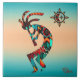 Brighten Your Home with this Unique "One of a Kind" Southwest Kokopelli Tile! It Features a Southwest Kokopelli in Turquoise, Orange and Black Playing the Flute and Dancing Under the Sun on a Turquoise and Orange Sunset Background!