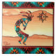 Brighten Your Home with this Unique "One of a Kind" Southwest Kokopelli Tile! It Features a Southwest Kokopelli Playing the Flute and Dancing Under the Sun in the Desert..Surrounded by a Southwest Border in Turquoise, Orange & Black!