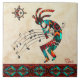 Brighten Your Home with this Unique "One of a Kind" Southwest Kokopelli Tile! It Features a Southwest Kokopelli Playing the Flute with Music Notes, Dancing Under the Sun on a Tan Sandstone Background...and a Bottom Border in Turquoise, Orange and Black!