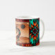 This is a Unique "One of a Kind" Southwest Kokopelli Coffee Mug! It Features a Kokopelli Playing the Flute and Dancing Under the Sun in the Desert...Surrounded by a Southwest Border in Turquoise, Orange & Black!