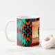 This is a Unique "One of a Kind" Southwest Kokopelli Coffee Mug! It Features a Kokopelli Playing the Flute and Dancing Under a Desert Sunset...Surrounded by a Southwest Border in Turquoise, Orange & Black!