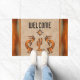 Personalize this Unique "One of a Kind" Southwest Kokopelli Doormat! It Features a Two Copper Kokopelli Playing the Flute and Dancing Around a Cactus Under the Sun on a Tan Background...Surrounded by a Copper Border!