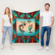 This is a Unique "One of a Kind" Southwest Kokopelli Sherpa Blanket! It Features a Southwest Kokopelli Playing the Flute and Dancing Under the Sun on a Turquoise and Orange Sunset Background...Surrounded by a Southwest Border in Turquoise, Orange & Black