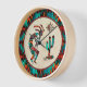 Brighten Up Your Home with this "One of a Kind" Southwest Kokopelli Wood Wall Clock! It Features a Southwest Kokopelli Playing the Flute and Dancing Around a Cactus Under the Sun on a Tan Sandstone Background...Surrounded by a Southwest Border in Turquoise, Orange & Black!