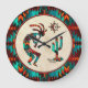 Brighten Up Your Home with this "One of a Kind" Southwest Kokopelli Wall Clock! It Features a Southwest Kokopelli Playing the Flute and Dancing Around a Cactus Under the Sun on a Tan Sandstone Background...Surrounded by a Southwest Border in Turquoise, Orange & Black!