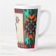 This is a Unique "One of a Kind" Southwest Kokopelli Latte Mug! It Features a Southwest Kokopelli Playing the Flute and Dancing Under the Sun on a Sandstone Background...Surrounded by a Southwest Border in Turquoise, Orange & Black!