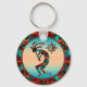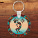 This is a Unique "One of a Kind" Southwest Kokopelli Keychain! It Features a Kokopelli Playing the Flute and Dancing Under the Sun on a Turquoise and Orange Sunset Background...Surrounded by a Southwest Border in Turquoise, Orange & Black!