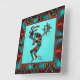 This is a Unique "One of a Kind" Southwest Kokopelli Wall Clock! It Features a Kokopelli Playing the Flute and Dancing Under the Sun on a Turquoise Background...Surrounded by a Southwest Border of Turquoise,Orange & Black!
