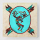 This is a Unique "One of a Kind" Southwest Kokopelli Wall Clock! It Features a Kokopelli Playing the Flute and Dancing Under the Sun on a Turquoise Background...Surrounded by Turquoise, Black and Orange Flame Border!