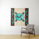 This is a Unique "One of a Kind" Southwest Kokopelli Wall tapestry! It Features a Southwest Kokopelli Playing the Flute and Dancing Under the Sun on a Turquoise Background...Surrounded by a Turquoise, Orange and Black Border on a Tan Leather Background!