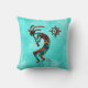 Brighten Up Your Home with Unique "One of a Kind" Southwest Kokopelli Throw Pillow! It Features a Southwest Kokopelli Playing the Flute and Dancing Under the Sun on a Turquoise and White Cloud Background!