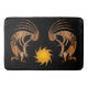 Southwest theme Sun Kokopellis bathroom rug. Alien or What is Kokopelli door mat. Native American Southwestern Abstract Kokopelli Cave Petroglyphs home decor. Rock and black color combination that you can change to fit your taste. Kokopelli is a fertility deity, a humpbacked flute player, Native American cultures. Attributed to ancient aliens or tribal art and inspired by cave and rock drawings. Great gift idea for those that love southwestern decor, and the ancient history of the planet.