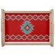 An original design in a bold red and turquoise geometric pattern created by Artellus. The artist was inspired by the colors and patterns around her home in the desert southwest.