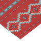 An original design in a bold red and turquoise geometric pattern created by Artellus. The artist was inspired by the colors and patterns around her home in the desert southwest.