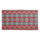 An original design in a bold red and turquoise geometric pattern created by Artellus. The artist was inspired by the colors and patterns around her home in the desert southwest.
