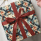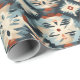 Southwestern wrapping paper in desert blues and terracotta, highlighted by a modern interpretation of tribal patterns found in the southwest.