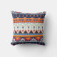 A bold southwest native pattern in blue, orange and red shapes throw pillow. For boho or southwest style decor. Mix and match with other patterns or on a solid color sofa or chair as an accent pillow.