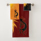 Native American Southwestern Abstract Kokopelli Cave Petroglyphs . Reds and vivid color combination that you can customize background colors to match your bathroom decor. Kokopelli is a fertility deity, a humpbacked flute player, win Native American cultures. Attributed to ancient aliens or tribal art and inspired by cave and rock drawings. Customize your Kokopelli ancient bath towels colors and styles. Great gift idea for those that ponder the ancient history of the planet.
