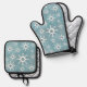 Southwest Winter Geometric Snowflakes Blue Oven Mitt & Pot Holder Set